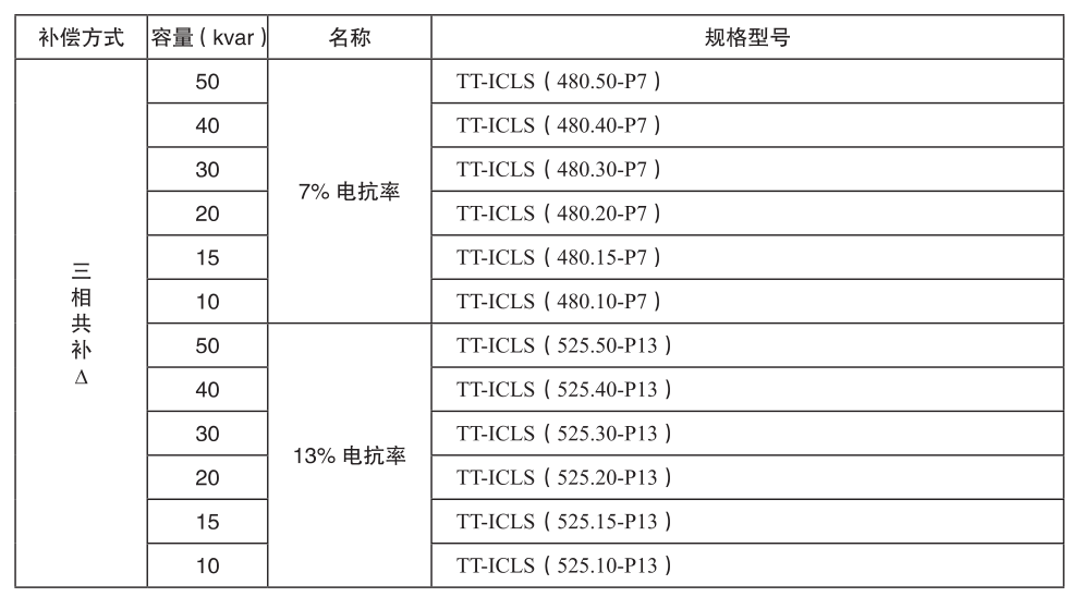 TT系列抑諧式低壓無功補償裝置標準電器柜內安裝臺數