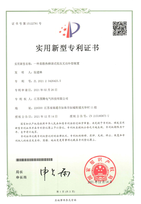 公司擁有一支由獲“國家千人計劃”項目資助者何晉偉博士領銜的高素質研發隊伍,與加拿大阿爾伯塔大學、東南大學、天津大學等海內外著名高校保持密切的合作關系,擁有一批專家級顧問和博碩研發團隊,獲得國家知識產權總局授權專利30余項。公司自主研發生產的三相不平衡治理裝置、無功補償裝置(智能低壓電容器)、有源濾波諧波治理裝置、低電壓治理裝置等產品,獲得了用戶的廣泛好評。電纜分支箱、環網柜、開關柜、柱上開關等中、高壓配電設備,銷售遍及海內外。企業先后取得“江蘇省級電力技術研發中心”、“江蘇省守合同重信用單位”、“江蘇省高技術企業”、“江蘇省民營科技企業”等榮譽。圖騰電氣愿與廣大用戶共同努力,為廣大用戶提供先進的技術和優質的服務,熱忱歡迎社會各界朋友對我司產品咨詢了解,同時恭迎您蒞臨我公司考察指導,洽談合作!